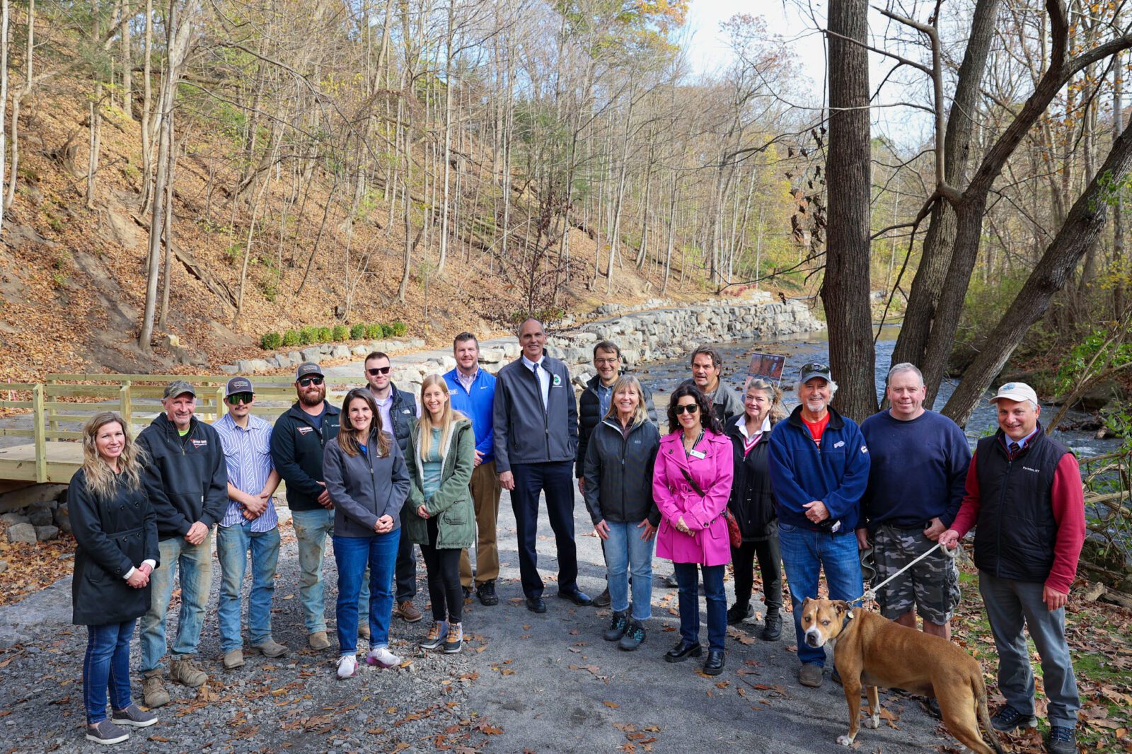 Perinton Town Supervisor Ciaran Hanna and the Perinton Town Board were joined by Penfield Town Supervisor Debbie Drawe, town officials, and neighbors to cut the ribbon on Spring Lake Trail. Previously a worn footpath with a challenging slope along Irondequoit Creek, construction on the trail commenced in the summer of 2023. The new trail is now part of the Town’s significant network of trails, which had previously earned Perinton designation as a “Trail Town USA” by the American Hiking Society.